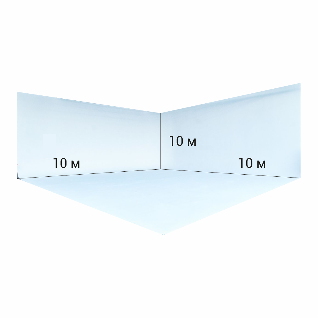 Размер циклорамы: 10 м / 10 м / 10 м. (высота 10 метров, ширина 10 метров, глубина 10 метров).