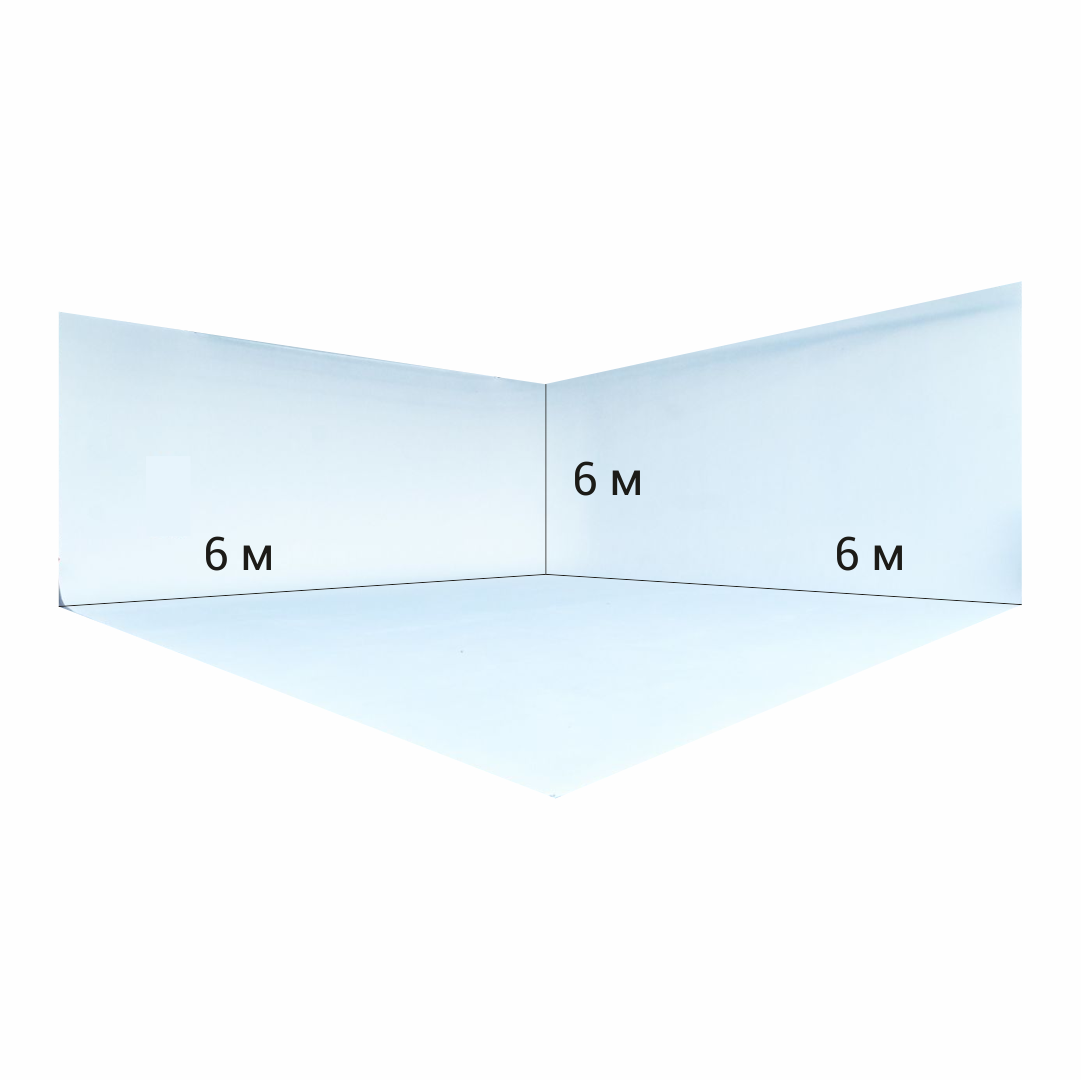 Размер циклорамы: 6 м / 6 м / 6 м. (высота 6 метров, ширина 6 метров, глубина 6 метров).