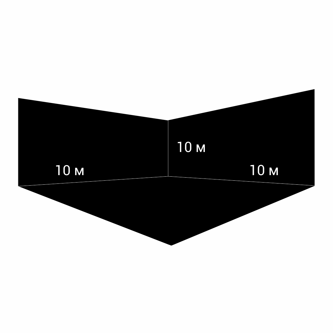 Размер циклорамы: 10 м / 10 м / 10 м. (высота 10 метров, ширина 10 метров, глубина 10 метров).