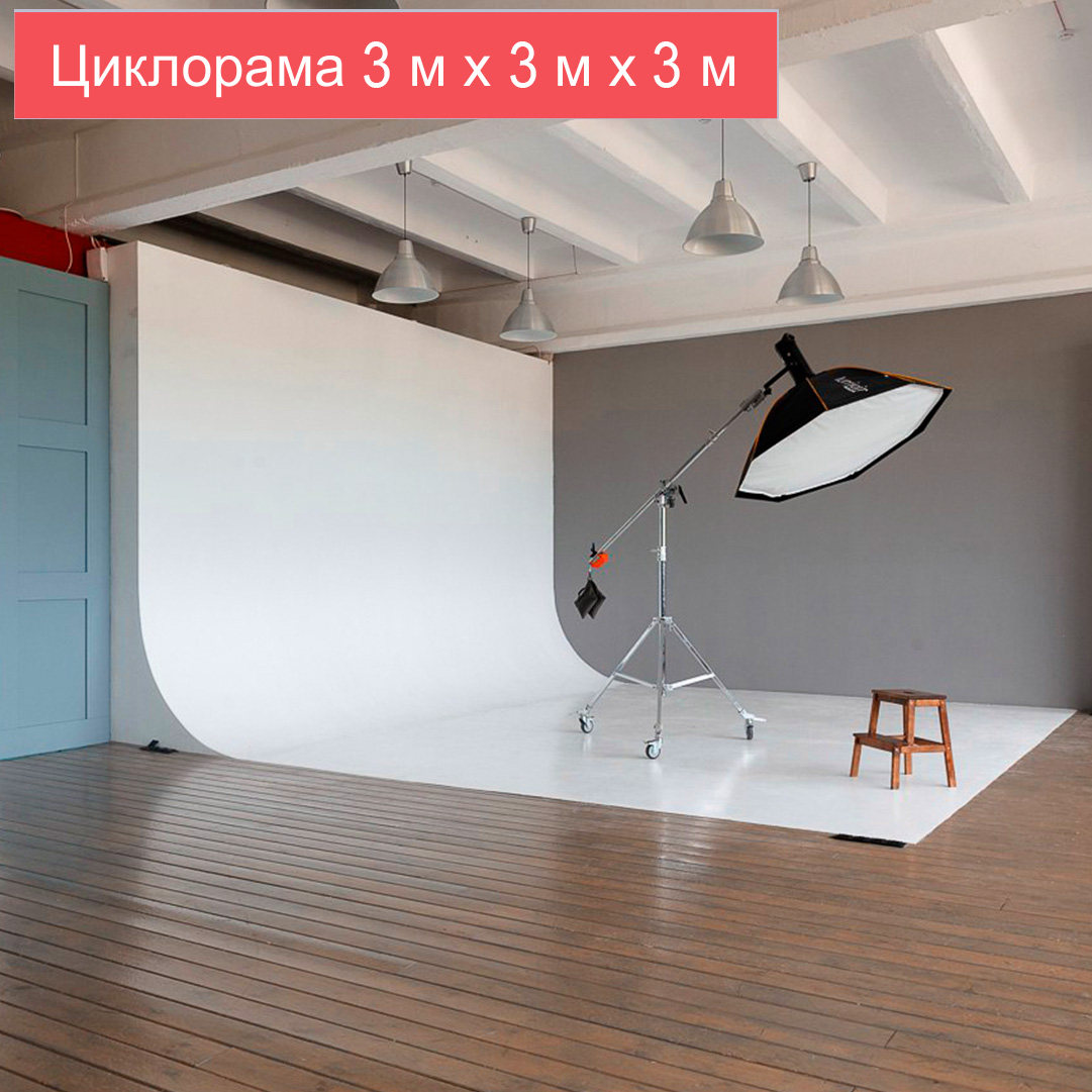 Размер циклорамы: 3 м / 3 м / 3 м.