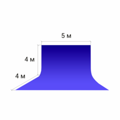 Размер циклорамы: 4 м / 5 м / 4 м. (высота 4 метра, ширина 5 метров, глубина 4 метра).