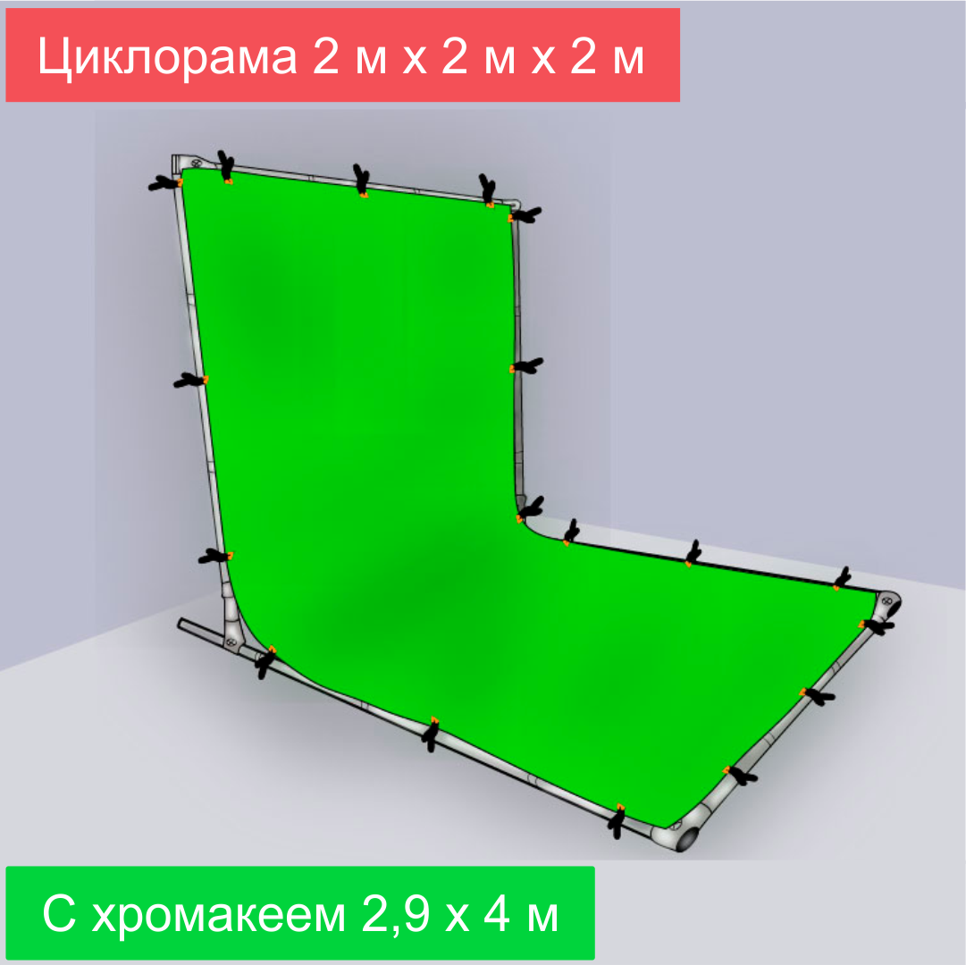 Размер циклорамы: 200 см. / 200 см. / 200 см.